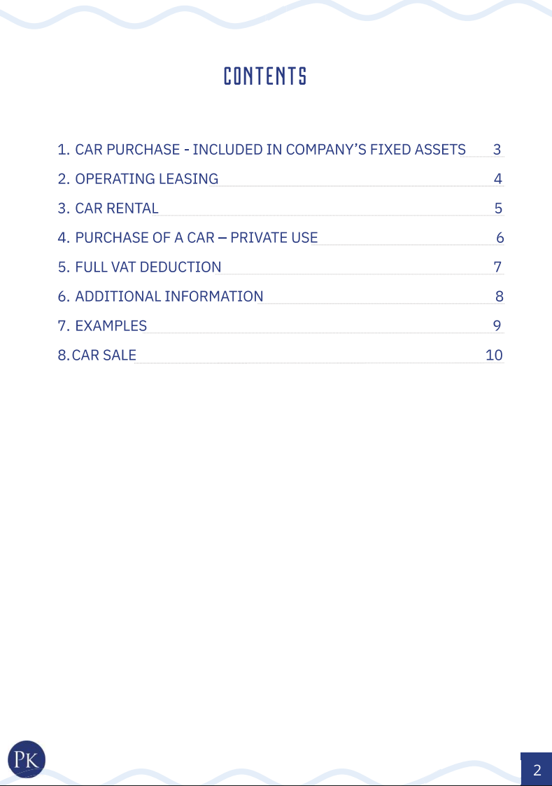 A practical guide for companies and sole traders explaining the rules for accounting for company cars. The document presents the possibilities and limits for recognising expenses as tax-deductible costs, including VAT deduction rules and differences in accounting depending on the chosen form of taxation.