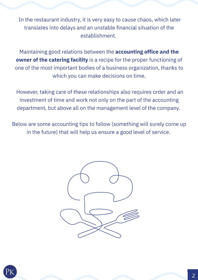 A comprehensive accounting and tax guide for restaurants and catering establishments, showing how to effectively organise finances and settlement processes with full accounting. The document describes key areas: creating recipes in POS systems, ongoing entry of purchase invoices, consumption cost analysis (food cost, margins, inventory), cash flow management and reconciliation, verification of bank statements and payment terminal settlements, including operator commissions.